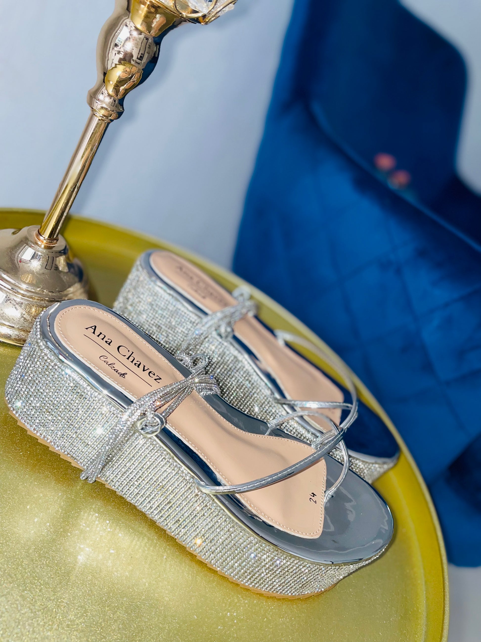 Plateforme de course super confortable avec décoration en pierre de cristal argenté