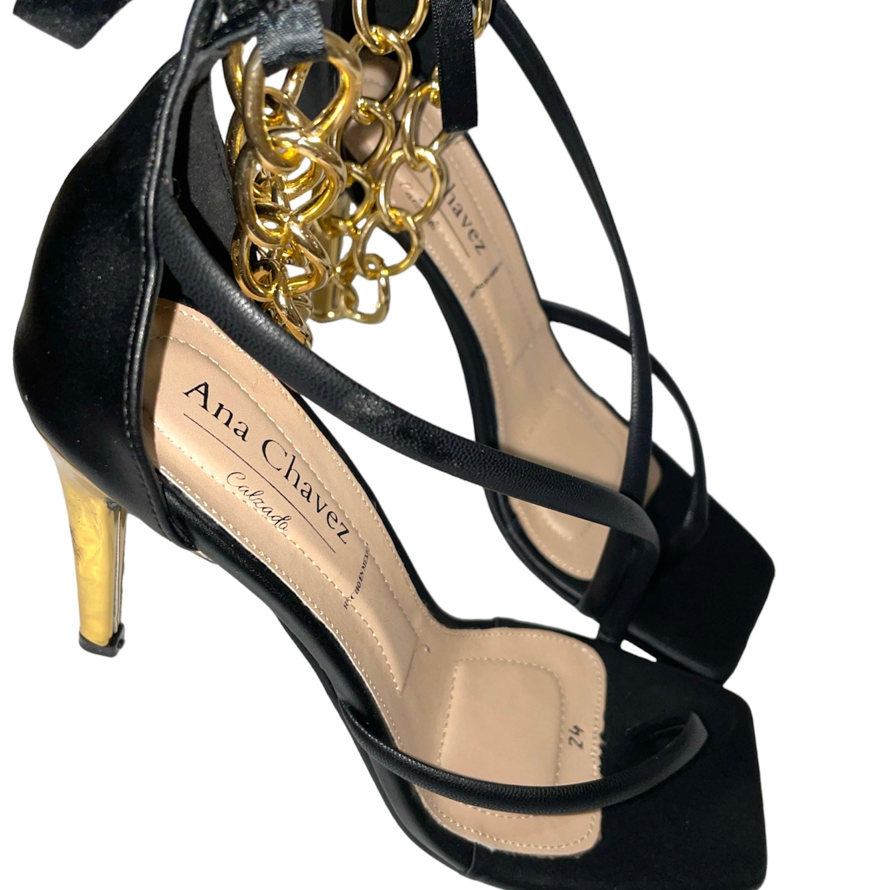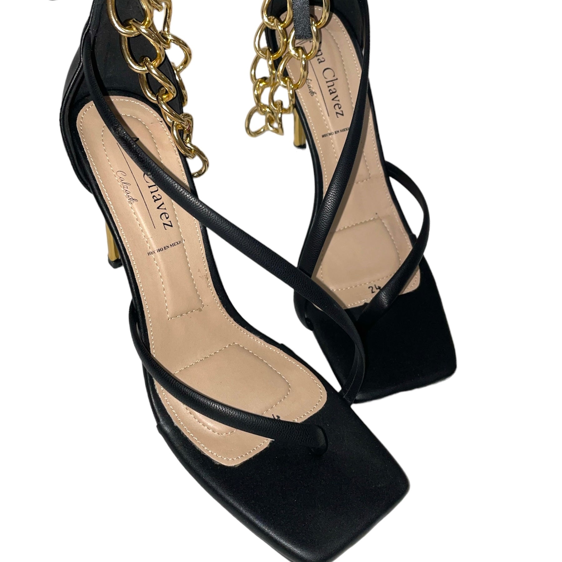 Sandalia punta cuadrada tacón de aguja,  pulsera de cadena