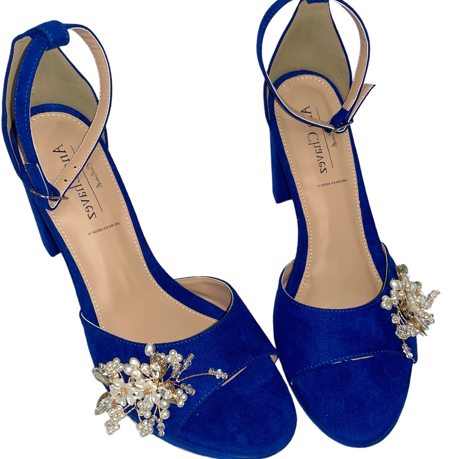 Zapatilla con plataforma tacón cuadrado, adorno de novia, cómodo